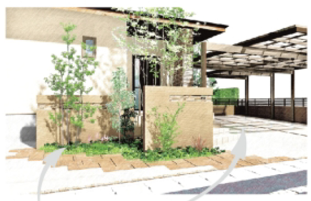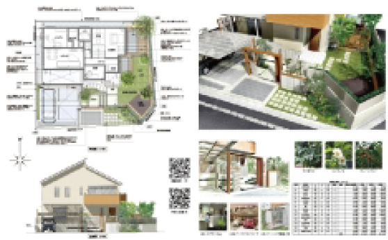 <エクステリアCADを使った、カラフルでリアル感のあるデザイン図>